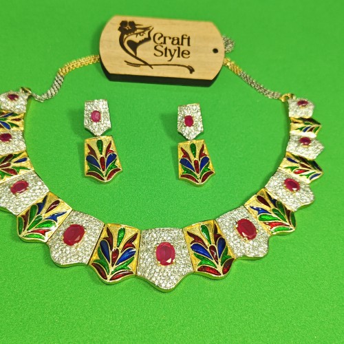 Diamond Cuts Necklace Set/Ex-1-GM9197-11-1790-Ruby